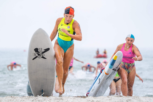 Zum Auftakt liefen die Frauen mit dem Rettungsbrett ins Wasser, um den 600 Meter langen Rundkurs in der Ostsee zu absolvieren. Luisa Waltermann (DLRG Harsewinkel) setzte sich im Finallauf auf den letzten Metern ab und erreichte souverän als Erste das Ziel. Lea Pauls (DLRG Kleve) passierte als Zweite die Ziellinie. Um Rang drei lieferten sich Janka Krohn (DLRG Gelsenkirchen-Buer) und Anna-Fiona Volz (DLRG Nieder-Olm/Wörrstadt) ein enges Duell – mit dem besseren Ende für Krohn. Bei den Männern sicherten sich zwei Schweizer Podestplätze. Matthew Colliss (SLRG Innerschwyz) paddelte als Schnellster über den 600 Meter Rundkurs. Sein Trainingspartner Moritz Padrutt erkämpfte sich Platz drei. Dazwischen schob sich der Mehrkampfsieger vom Vorjahr, Clemens Wulkopf (DLRG Harsewinkel), auf Platz zwei.